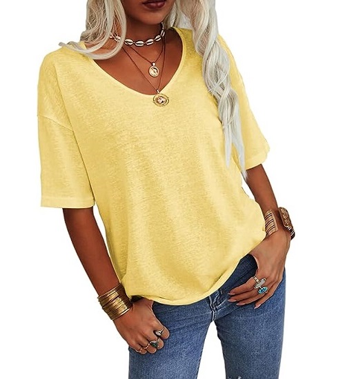 Features: Summer T shirt tops, V-Neck, Half sleeves,Solid color,loose fit, basic,simple casual style and never out of fashion.