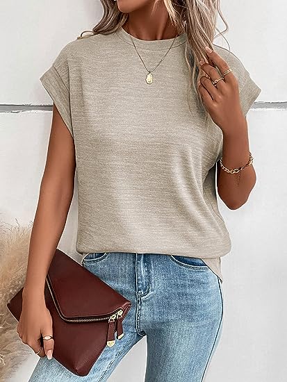 Women's Mock Neck Cap Sleeve T Shirts Tops Casual Basic Tee